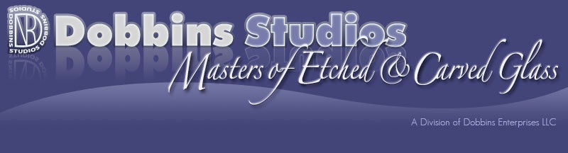 Dobbins Studios is a company of 4 people, including owner Ruth Dobbins. We offer the full range of services in the glass etching industry, from graphic design through production and have completed thousands of pieces throughout the US and abroad, from residential through commercial. This includes work of all different sizes, from gifts and awards up to a glass mural 8 feet high and 35 feet long. We have an excellent graphics department that uses the most up to date graphics computers, software and techniques in the industry today.